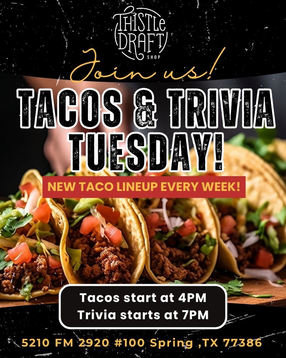 Tacos at 4PM. Trivia at 7PM. New taco lineup every week.